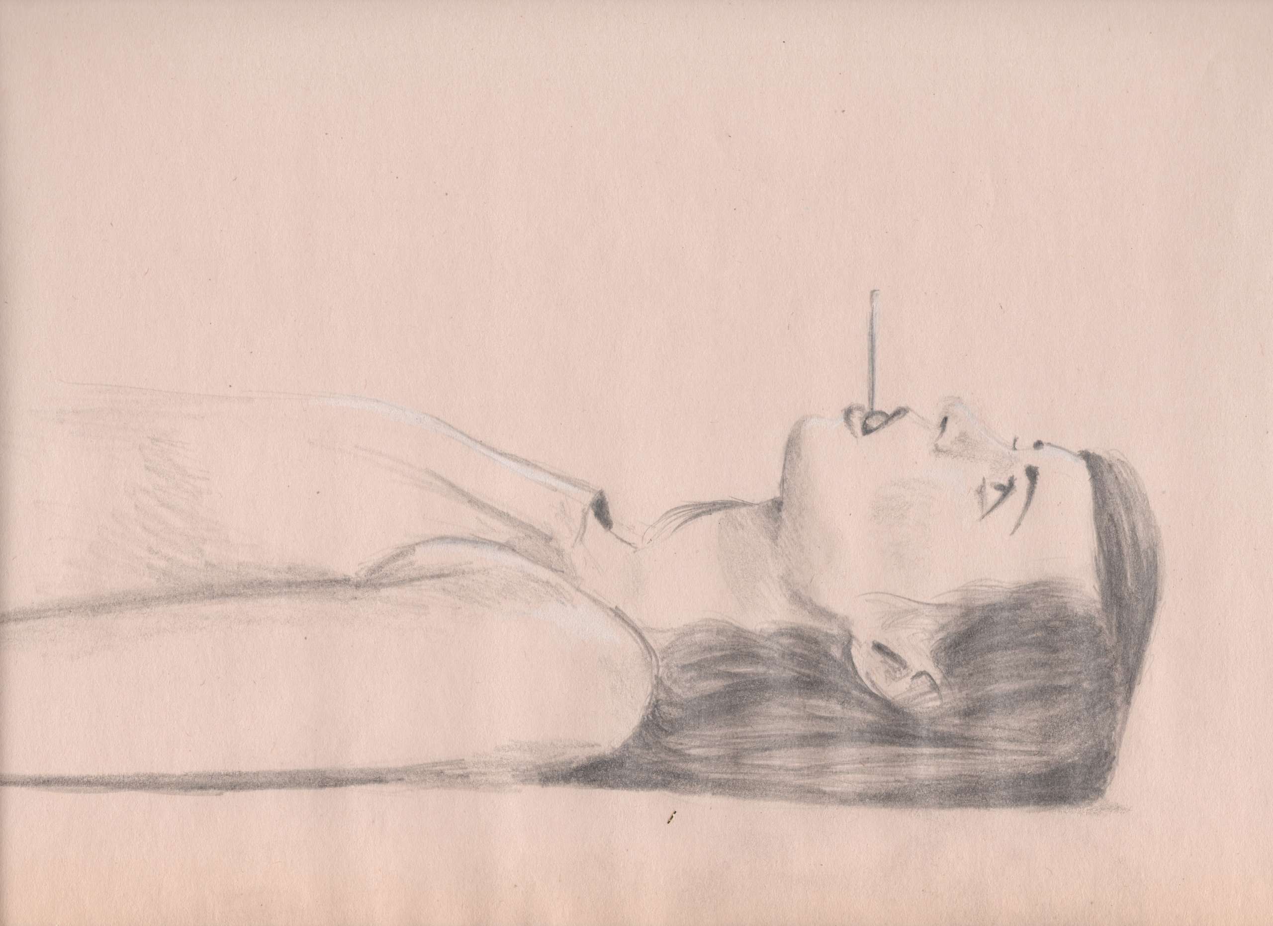 Graphite and white conte crayon.